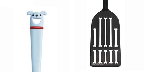| フックに掛けて収納 可愛いイヌがにっこり口を開けているので、フックに掛けて収納することも可能です。 | 余分な水分や油が落ちる 骨の形の穴開き形状なので、しっかりと余分な水分や油を落とすことができます。 |