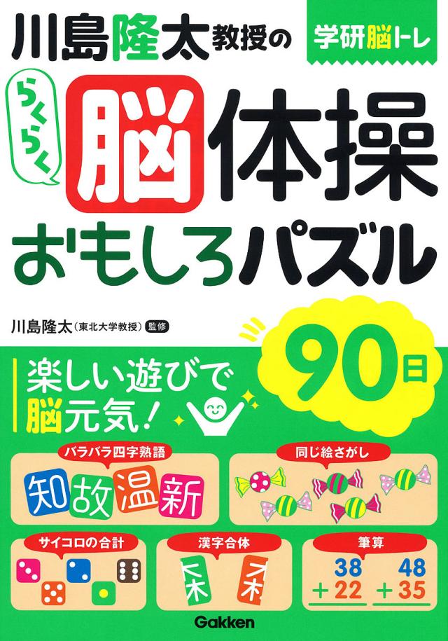 遊びながら脳を楽しくトレーニング!川島隆太教授の「らくらく脳体操」。本書は、漢字の読み書き計算から絵や文字や数字のパズルまで、楽しい脳体操を満載。四字熟語の並べ替え、筆算、慣用句パズル、イラスト間違い探し、同じ絵探しなどおもしろ脳体操を掲載