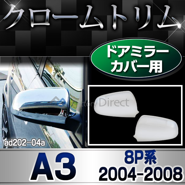 ri-ad202-04(212-05) ドアミラーカバー用 アウディ A3 (Typ 8P 2004-2008 H16-H20) Audi クローム メッキ トリム ガーニッシュ カバー ( メッキ パーツ ドアミラー 取付 ミラーカバー メッキパーツ 車 車用 ミラー メッキトリム ドレスアップ ミラーカバー )