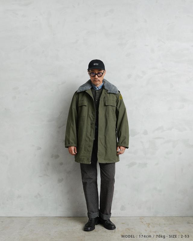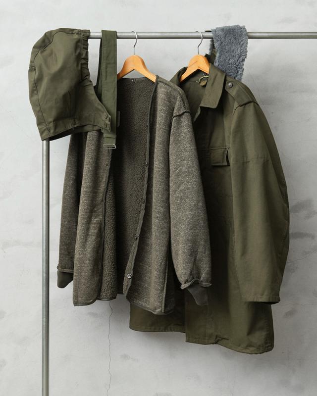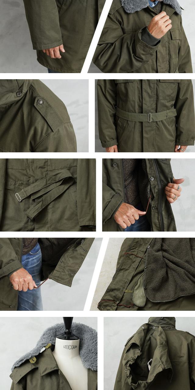 こちらのコートはチェコ共和国軍(旧チェコスロバキア軍)の幕僚および統合軍(陸軍・空軍・訓練コマンド)の兵士に広く支給されていたアイテムです。ボアライナー、襟のボア、フード、ウエストベルトは着脱可能なつくりとなっており、3シーズン対応可能です。