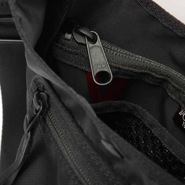 メイン収納の開口部はファスナー式。