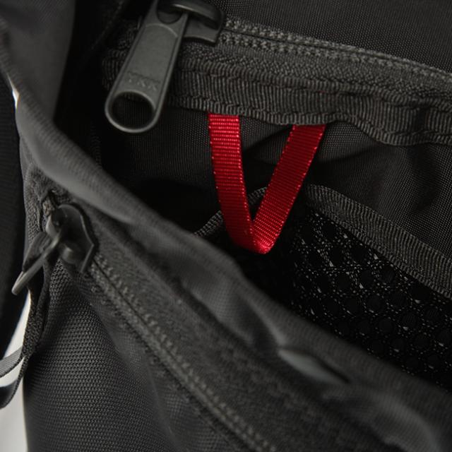 視認性が高いレッドのループ状のナイロンテープを装備。カラビナ付きのポーチや小物などを引っ掛けて使える仕様になっています。