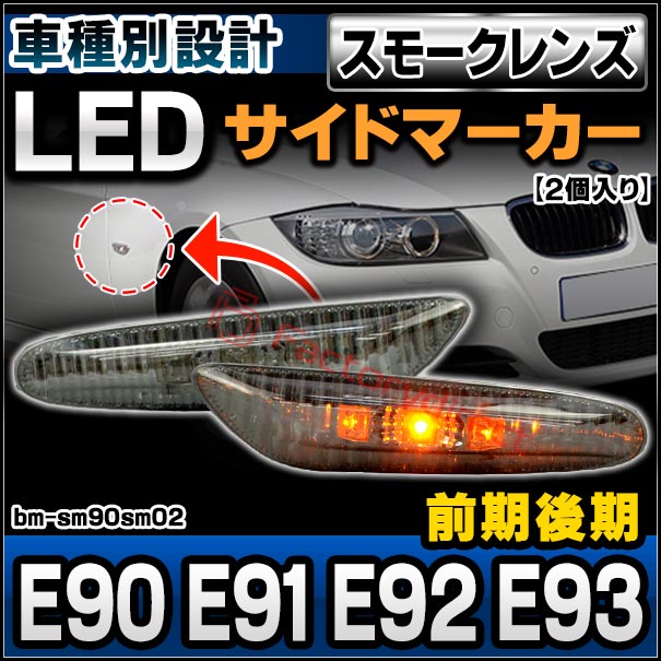 ll-bm-sm90sm02 (ON-OFF点灯 スモークレンズ) BMW 3シリーズ E90 E91 E92 E93 前期後期 LEDサイドマーカー ウインカーランプ (車 カスタム パーツ アクセサリー 交換 ドレスアップ ウインカー ライト ランプ ウィンカー 自動車 外装灯 サイドウインカー)