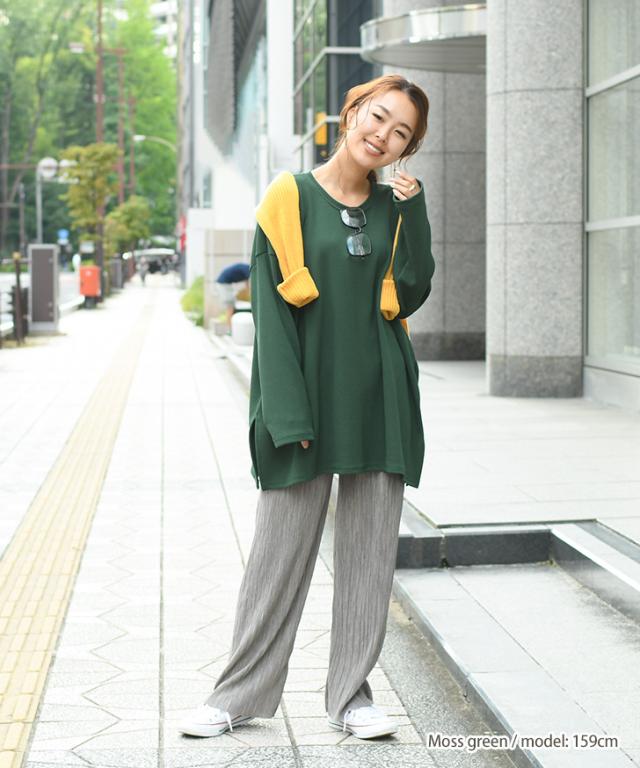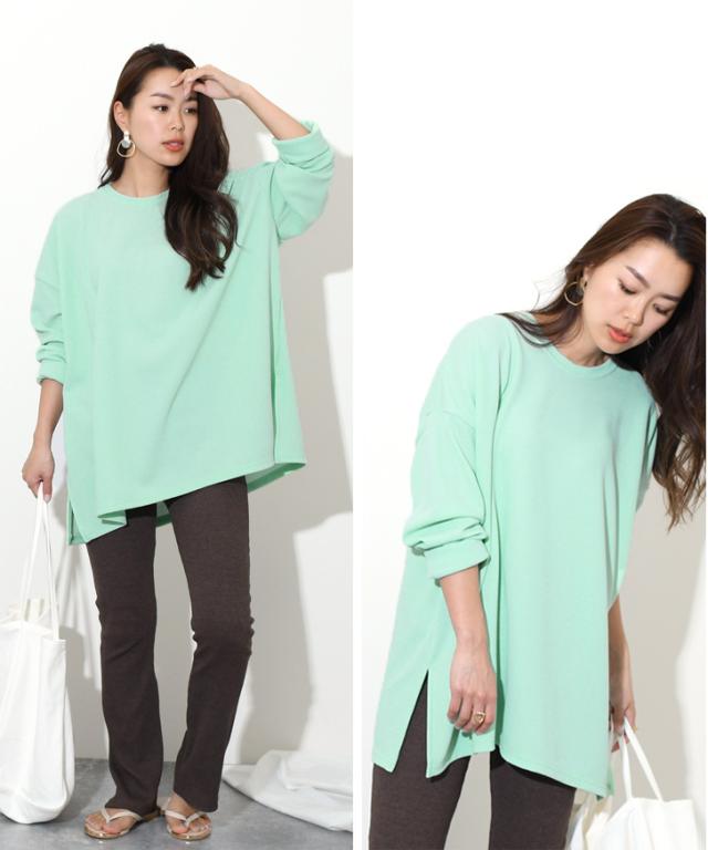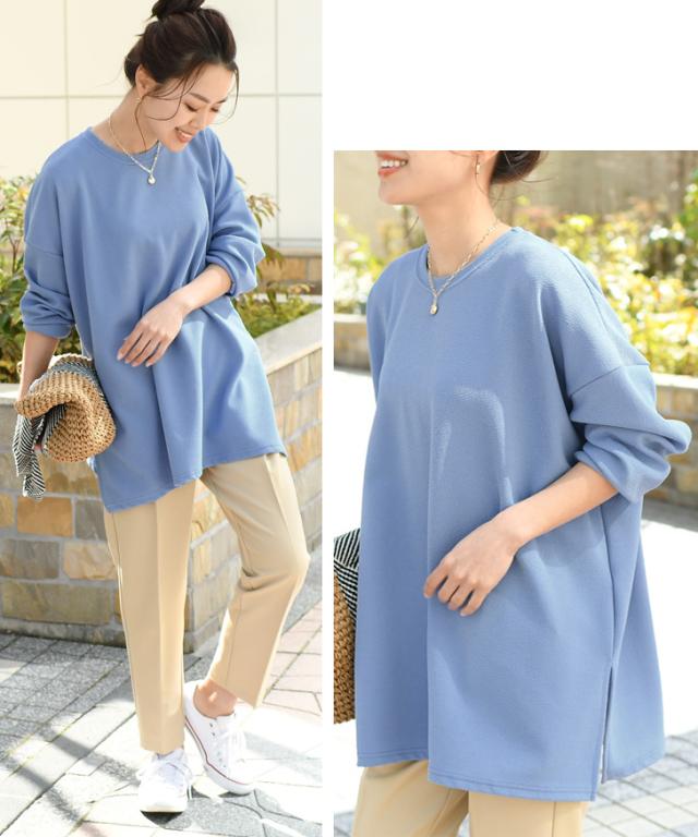 着回し お出かけ プルオーバー エンボス加工サイドスリットベーシックワイドカットソー トップス ロンT 長袖 Tシャツ レディース マタニティ きれいめ 春夏 グリーン ロング チュニック ゆったり 大きめ プルオーバー 無地 シンプル リラックス 軽い 大人 レイヤード 重ね着 おしゃれ ワンマイルウェア ルームウェア 部屋着 ストレッチ 伸縮性 体型カバー 在宅 リモート テレワーク オケージョン オフィスカジュアル 学校行事 デート 女子会 お呼ばれ 20代 30代 40代 50代 ロングシーズン 韓国ファッション セレモニー 入園式 卒園式 入学式 卒業式 母親 ママ ビジネス オフィス 通勤 通学 OL 緑 黄色 灰色 茶色 青 水色 白 黒 妊婦 妊婦服 産前 産後 楽ちん