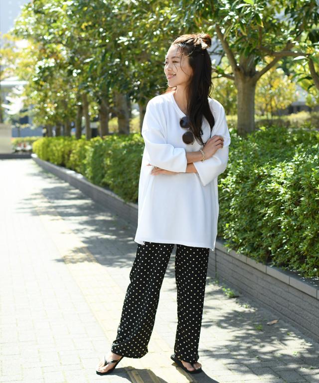 お出かけにもリラックスタイムにも役立つワイドカットソー