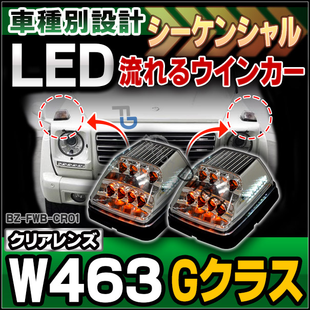 ll-bz-fwb-cr01 シーケンシャル 流れるウインカー クリアレンズ Gクラス W463 ゲレンデヴァーゲン LEDボンネットウインカーランプ Benz メルセデス ベンツ (カー アクセサリー パーツ 改造 車 led ウインカー カスタム ゲレンデ)