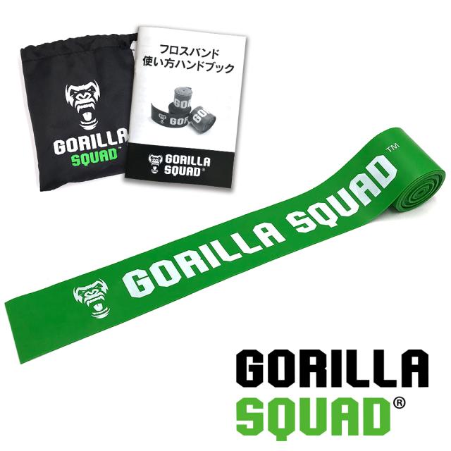 フロスバンド グリーン 250cm ゴリラフロス フロッシング【使い方マニュアル&キャリーバッグ付】筋膜リリース リカバリ 肉離れ 捻挫 テニス肘 膝の痛み 股関節の可動性 足首の捻挫 GORILLA SQUAD ゴリラスクワッド