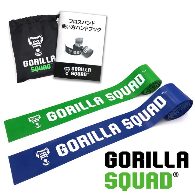 フロスバンド グリーン&ブルー2本セット 250cm ゴリラフロス フロッシング コンプレッションバンド【使い方マニュアル&キャリーバッグ付】筋膜リリース リカバリ 肉離れ 捻挫 テニス肘 膝の痛み 股関節の可動性 足首の捻挫 GORILLA SQUAD ゴリラスクワッド