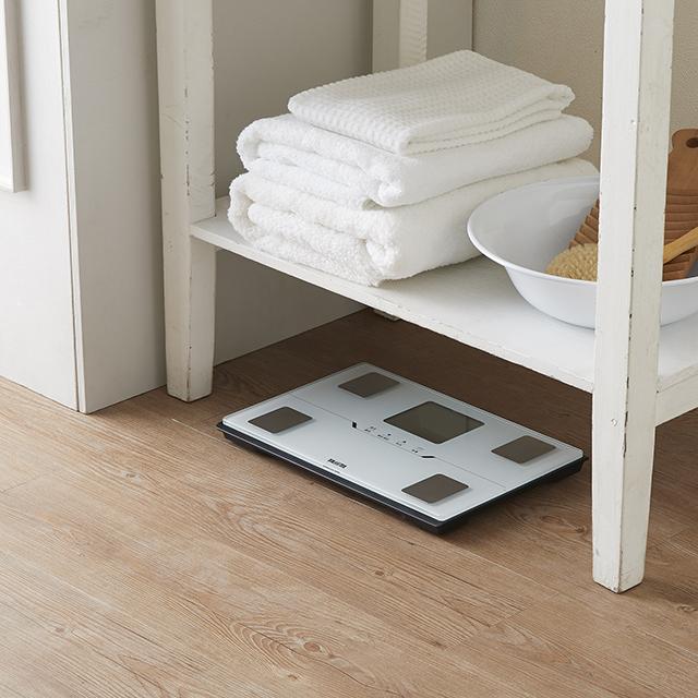 - スマホ連動で体調管理したかったのでこちらを選びました。乗るだけで計測してくれるのも手軽で便利です。コンパクトで立て置きもできるらしく大満足です。