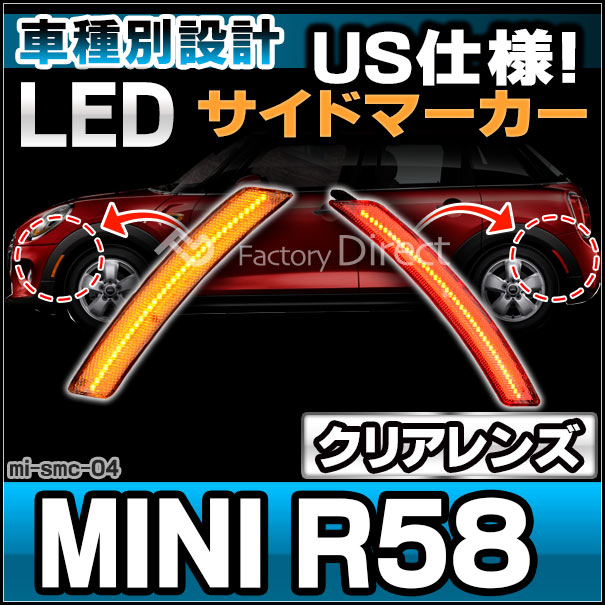 ll-mi-smc-cr04 (ON-OFF点灯 クリアーレンズ) US仕様 MINI ミニ R58 Coupe クーペ(2012.07以降 H24.07以降) LEDサイドマーカー (フロント&リアセット) ※要加工 BMW (車パーツ マーカーランプ LEDマーカー ランプ ライト カーパーツ 自動車 部品 カスタム)