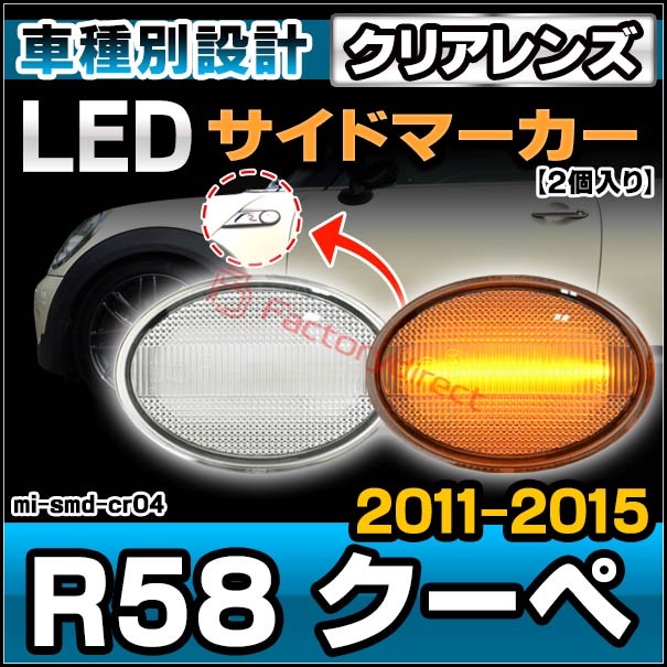 ll-mi-smd-cr04 (ON-OFF点灯 クリアーレンズ) Ver.2 MINI ミニ R58 Coupe クーペ (2011-2015 H23-H27) LEDサイドマーカー ウインカー BMW (車用品 ウィンカー サイドランプ ledマーカー カスタム パーツ ドレスアップ サイドウインカー 外装ランプ 自動車パーツ 改造)