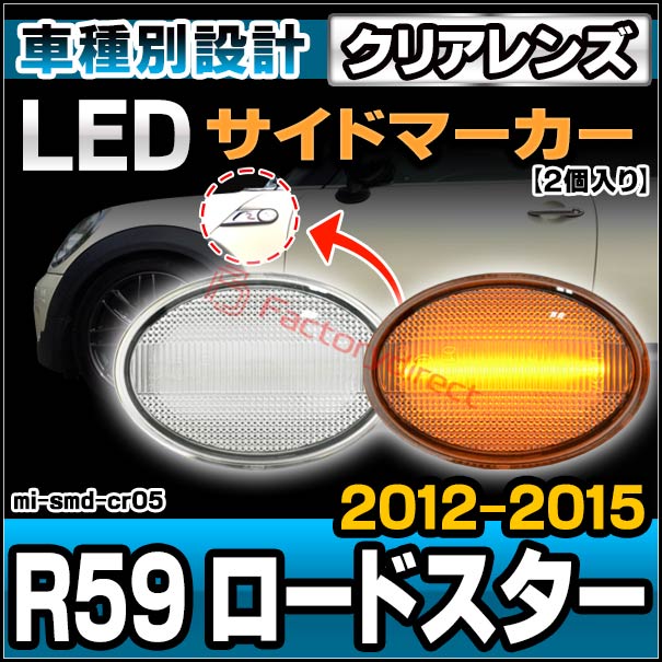 ll-mi-smd-cr05 (ON-OFF点灯 クリアーレンズ) Ver.2 MINI ミニ R59 Roadster ロードスター(2012-2015 H24-H27) LEDサイドマーカー ウインカー BMW (車用品 ウィンカー サイドランプ ledマーカー カスタム パーツ ドレスアップ サイドウインカー 外装ランプ カー用品)