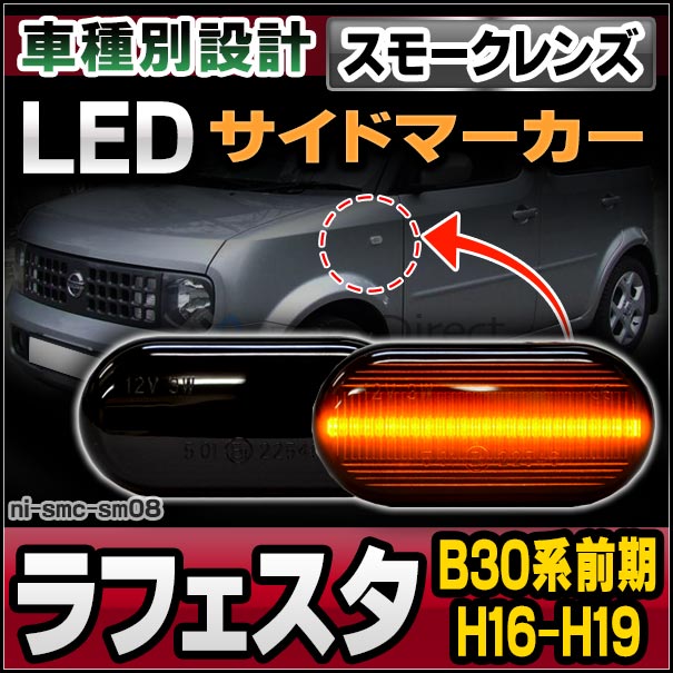 ll-ni-smc-sm08 (スモークレンズ) LAFESTA ラフェスタ(B30系前期 H16.12-H19.05 2004.12-2007.05)LEDサイドマーカー LEDウインカー 純正交換 日産 ニッサン ( パーツ カスタムパーツ サイドマーカー ウインカー サイド マーカー レンズ )