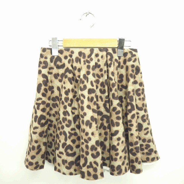 【中古】グリード インターナショナル スカート フレア ミニ 総柄 バックジップ 裏起毛 S カーキ ブラウン 緑 茶