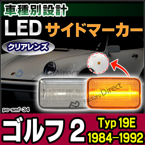 ll-po-smf-cr34 クリアーレンズ Golf Mk2 ゴルフ 2 (Typ 19E 1984-1992 S59-H04) ※カブリオレ,シンクロ Syncro含む LEDサイドマーカー LEDウインカー 純正交換(カスタム パーツ マーカー 車 ウィンカー 外装 マーカーレンズ サイド 部品)
