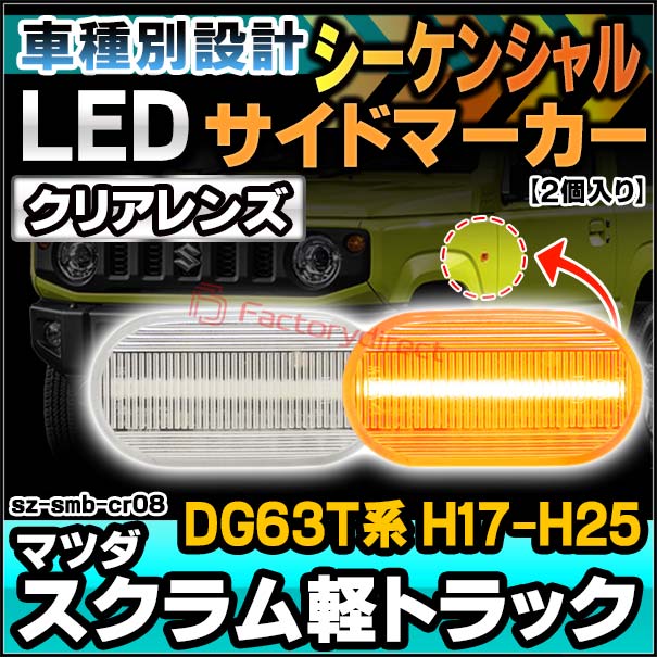 ll-sz-smb-cr08 シーケンシャル & クリアーレンズ マツダ MAZDA SCRUM スクラム軽トラック (DG63T系 H17.11-H25.08 2005.11-2013.08) LEDサイドマーカー LEDウインカー 流星点灯 (カスタム パーツ 車 流れる ウィンカー トラック マーカーランプ マーカー)