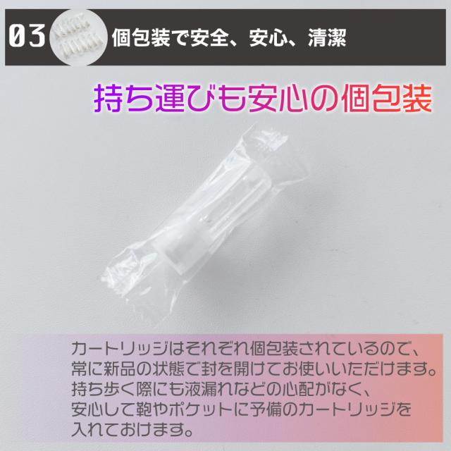何度かの改良を経てプルームテックプラスの互換カートリッジとしてご満足いただけるクオリティを実現。カートリッジ切れの予備としてもおすすめです。