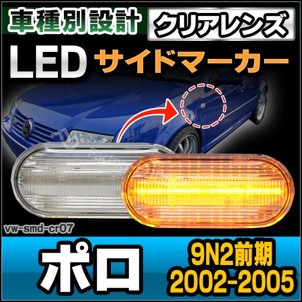ll-vw-smd-cr07 クリアーレンズ Polo ポロ(9N2前期 2002-2005 H14-H17) LEDサイドマーカー VW フォルクスワーゲン( カスタム パーツ サイドマーカー ワーゲン ウィンカー ウインカーランプ カスタムパーツ 車用品 ledウィンカー )