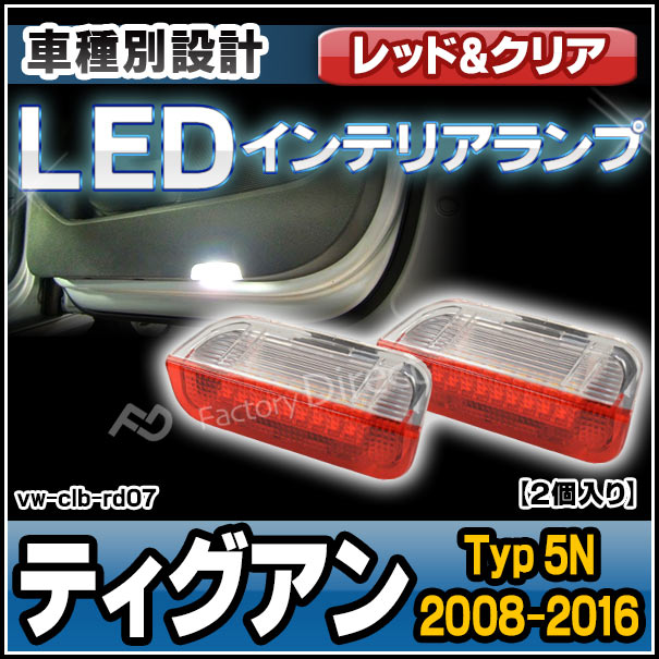 ll-vwclb-rd07 (ホワイト&レッド) Tiguan ティグアン (Typ 5N 2008-2016 H20-H28) VW・フォルクスワーゲン LEDインテリアランプ カーテシランプ ( 車パーツ ライト ランプ 車内 内装 ドレスアップ フットランプ カスタム 車用 ドア )