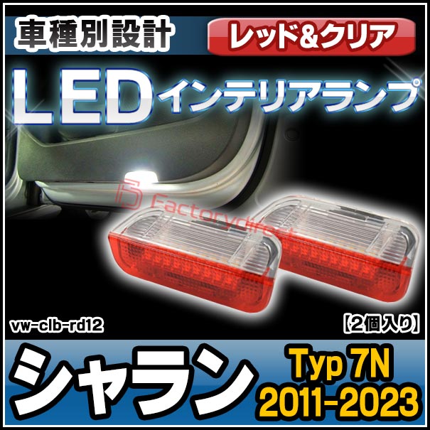 ll-vwclb-rd12 (ホワイト&レッド) Sharan シャラン (Typ 7N 2011-2023 H23-R05) VW フォルクスワーゲン LEDインテリアランプ カーテシランプ ( 車パーツ ライト ランプ 車内 内装 ドレスアップ フットランプ カスタム 車用 ドア パーツ )