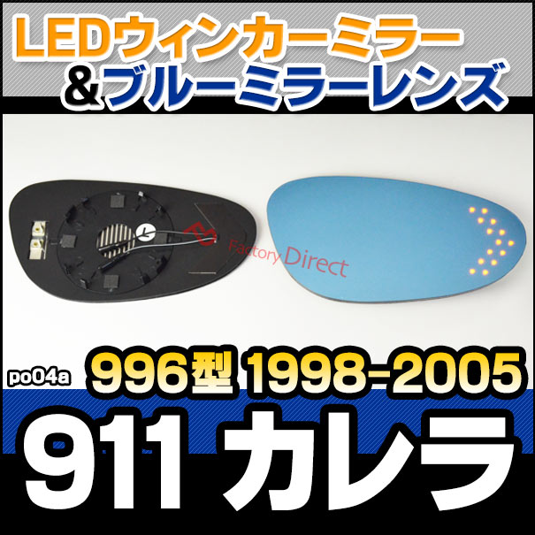 lm-po04a Porsche ポルシェ 911 Carrera カレラ (996型 1998-2005 H10-H17) LEDウインカードアミラーレンズ ブルー ドアミラーガラス ( サイドミラー ブルーレンズ ブルーミラーレンズ ワイドミラー 撥水 親水加工 ウインカー ミラーヒーター )