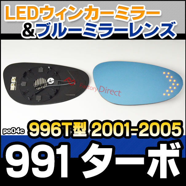 lm-po04c Porsche ポルシェ 991 Turbo ターボ (996T型 2001-2005 H13-H17) LEDウインカードアミラーレンズ ブルー ドアミラーガラス ( サイドミラー ブルーレンズ ブルーミラーレンズ ワイドミラー 撥水 親水加工 ウインカー ミラーヒーター )