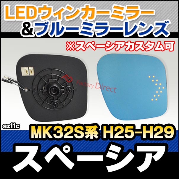 lm-sz11c Spacia スペーシア (MK32S系 H25.02-H29.12 2013.02-2017.12 ※スペーシア可,H27.05 2015.05以降の全方位モニター装着車は非適合) SUZUKI スズキ LEDウインカードアミラーレンズ ブルー ドアミラーガラス ( サイドミラー 撥水 親水加工 )