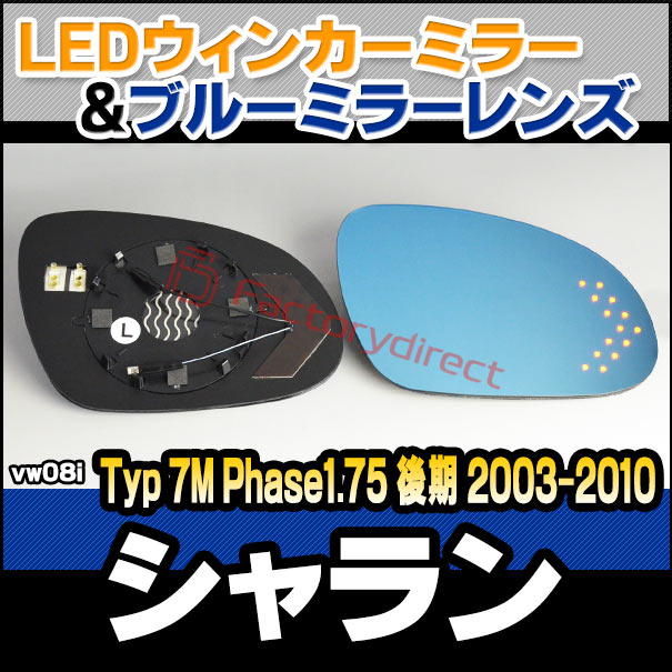 lm-vw08i Sharan シャラン (Typ 7M Phase1.75 後期 2003-2010 H15-H22) VWフォルクスワーゲン LEDウインカードアミラーレンズ ブルー ドアミラーガラス ( サイドミラー ブルーレンズ ワイドミラー 撥水 親水加工 ウインカー ミラーヒーター )