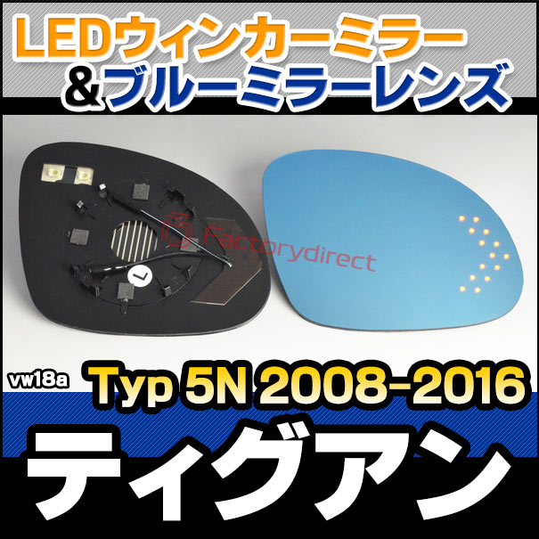 lm-vw18a Tiguan ティグアン (Typ 5N 2008-2016 H20-H28) VW フォルクスワーゲン LEDウインカードアミラーレンズ ブルー ドアミラーガラス ( 外装 カスタムパーツ サイドミラー ブルーレンズ ワイドミラー 撥水 親水加工 ウインカー ミラーヒーター )