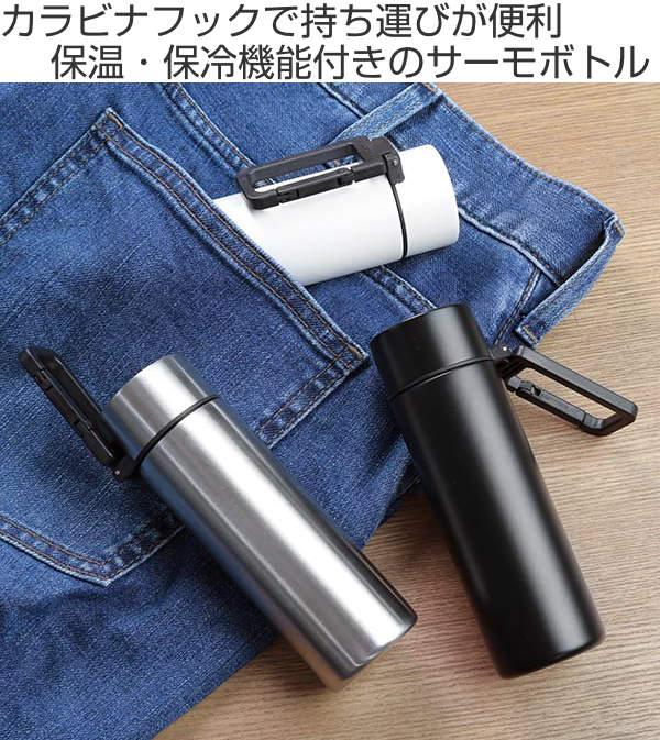 持ち運びが便利なカラビナフックが付いたサーモボトルです。両手がふさがっている時など、指に掛けて持ち歩けるので荷物が多い時などに便利です。