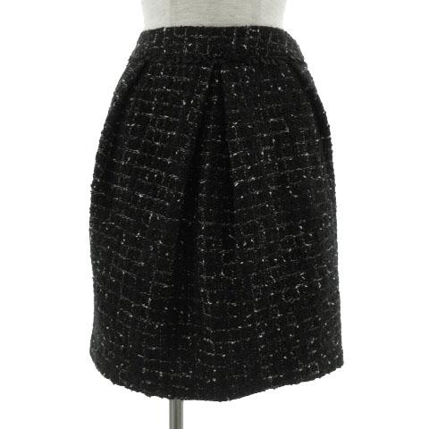 【中古】リッチミー Riccimie スカート ひざ丈 ツイード ウール混 ラメ ブラック 黒 ホワイト 白 0 レディース