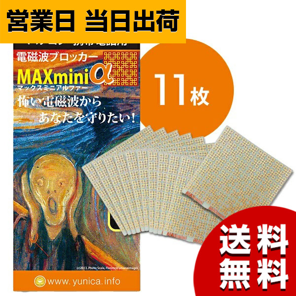 電磁波ブロッカー MAXmini α マックスミニアルファ 大容量パック 11枚入り 電磁波防止 電磁波防止シート 電磁波干渉防止シート 電磁波 除去 シールド カット シール 丸山修寛 監修 ユニカ