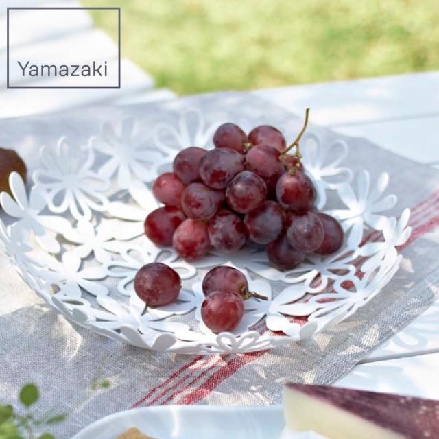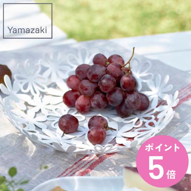 山崎実業 フラワーバスケット ホワイト ( 4903208069731 フルーツバスケット 25cm L バスケット かご 食卓 フルーツ お菓子 丸 果物入れ カゴ テーブル 丸型 おしゃれ 白 花柄 )