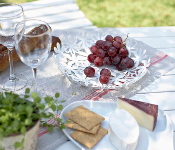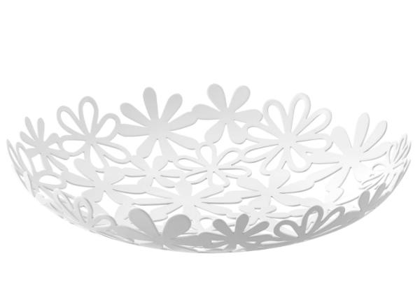 フラワーのデザインが華やかな、スチール製のバスケットです。シンプルなデザインなので、様々なインテリアに馴染みが良く、フルーツやスイーツを乗せてテーブルに出すだけで、パッと華やかな空間を演出できます。