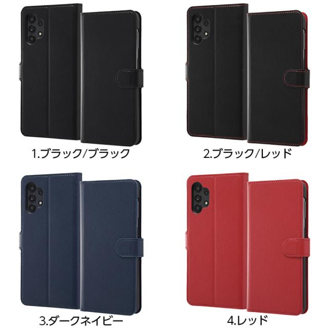 Galaxy A32 5G ケース カバー 無地 ブラック ネイビー レッド 手帳型 レザー 革 保護 マグネット シンプル カード入れ ポケット 軽い SCG08 au ギャラクシー
