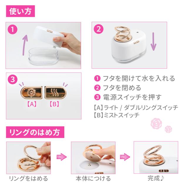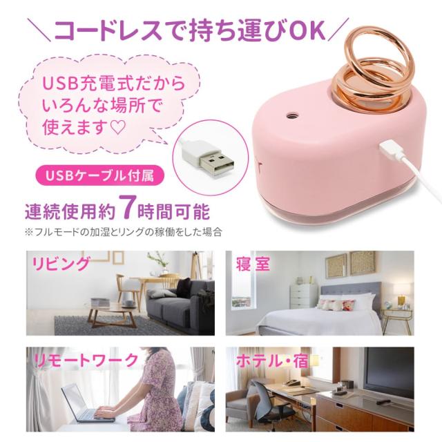 木造/和室/洋室/加湿/簡単給水/給水/超音波/超音波加湿器/超音波卓上加湿器/超音波加湿器/加湿器/オフィス/卓上/一軒家/マンション/アパート/充電/充電式/コードレス/コードレス加湿器/充電式加湿器/コンパクト加湿器/可愛い/かわいい/おしゃれ/リズム/リズム加湿/ミスト/USB/USB充電式/乾燥/乾燥対策/インテリア/静音/リング/ダブルリング/回転/インテリア加湿器