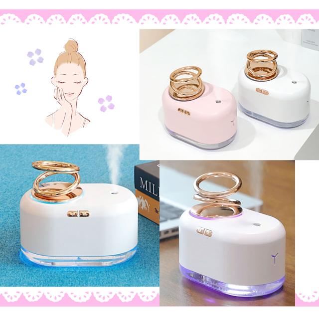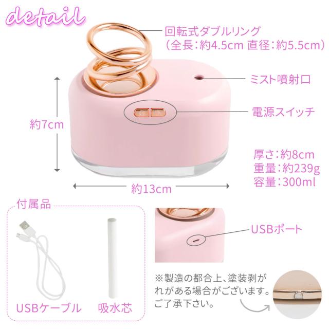 コードレス 加湿器 大容量 300ml 充電式 卓上 静音 リング 回転リング 加湿器 超音波式 USB 卓上加湿器 LED ミストボックス USB加湿器 長時間 ミニ加湿器 ミニ 加湿機 オフィス リズム加湿 インテリア かわいい おしゃれ TN-WRHD
