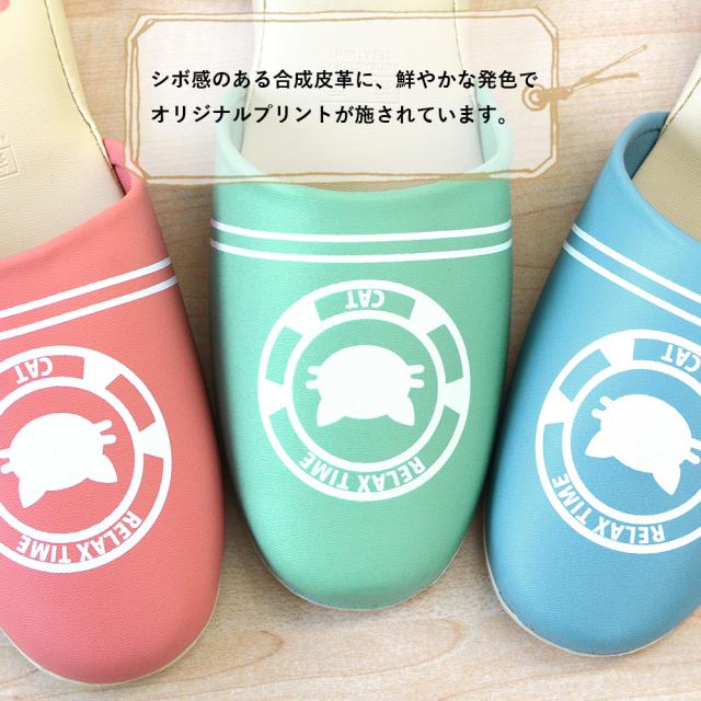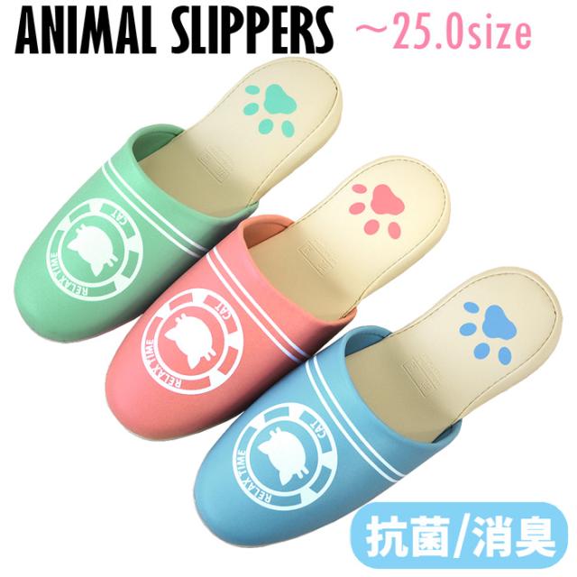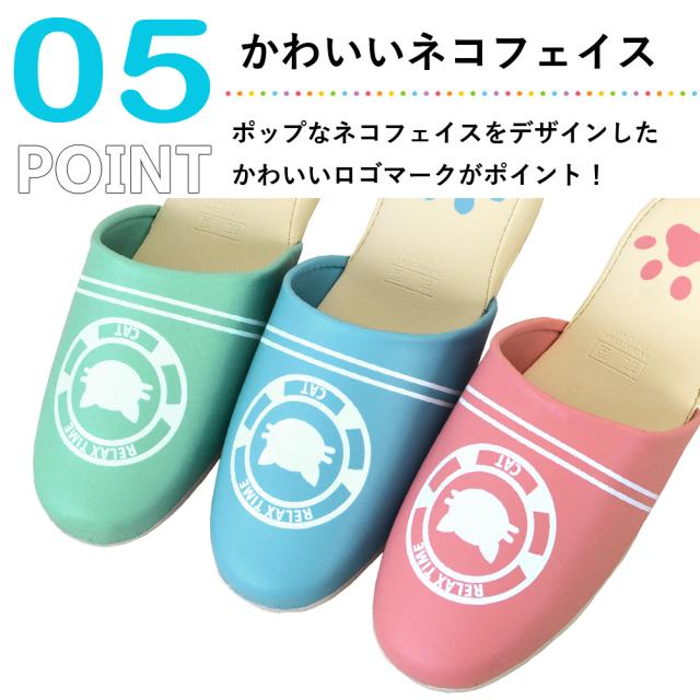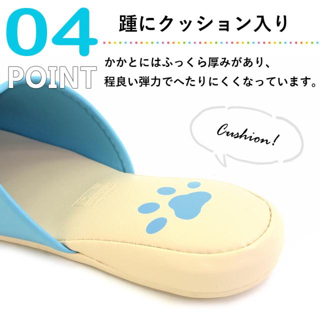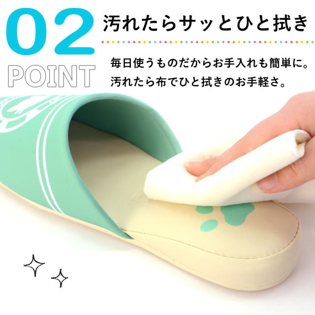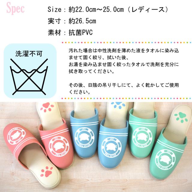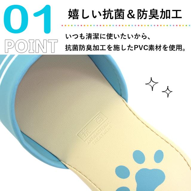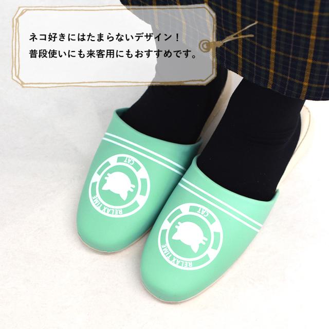 かわいいネコのマークがプリントされた抗菌スリッパ。