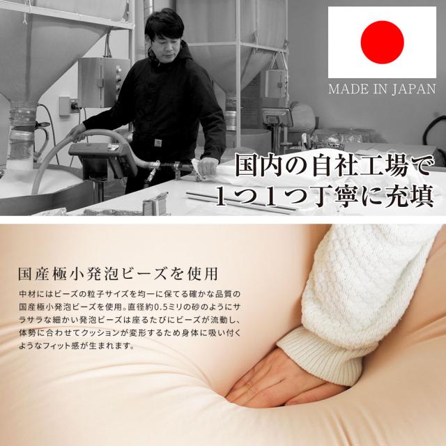 極小ビーズは絶妙なもちもち感のある座り心地を実現します。