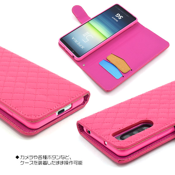 スマホケース Xperia5 II SO-52A SOG02 A002SO用 キルティングレザー 手帳型ケース 全3色 ふわふわ キルト 横開き 保護 カバー 傷防止 xperia5II so52a sog02 a002so エクスぺリア5マーク2