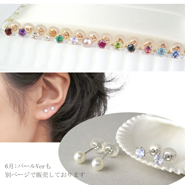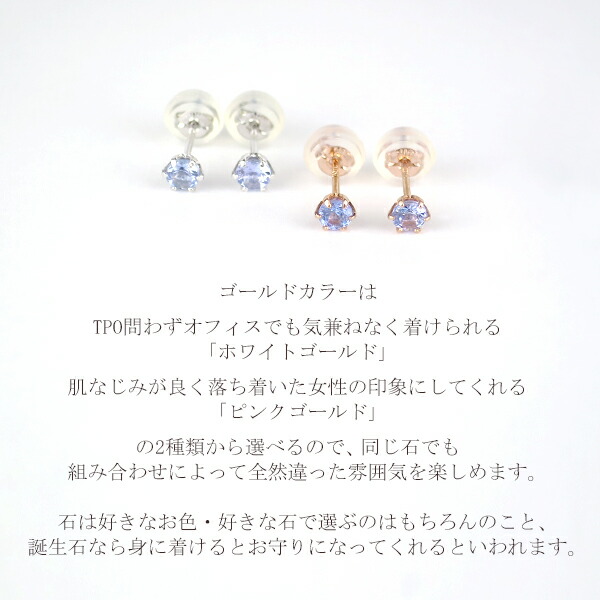 K10 ゴールド 3mm 誕生石 一粒 スタッドピアス 2P 両耳用 シンプル さりげない 天然石 ピアス 10金 10k ピンクゴールド ホワイトゴールド
