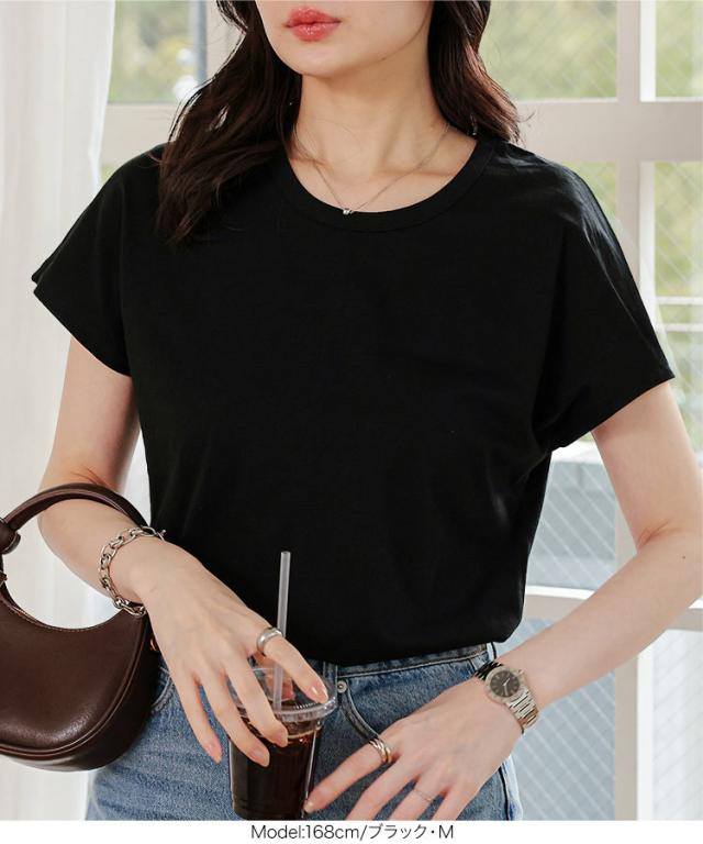 春新作 選べる2サイズ コットン100%シンプルTシャツ C5106 入荷済 トップス クルーネック インナー 半袖 丸首 綿100% S M レディース ゆったり 無地 ティシャツ ティーシャツ カットソー 黒 白