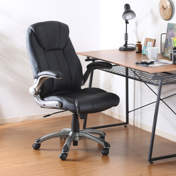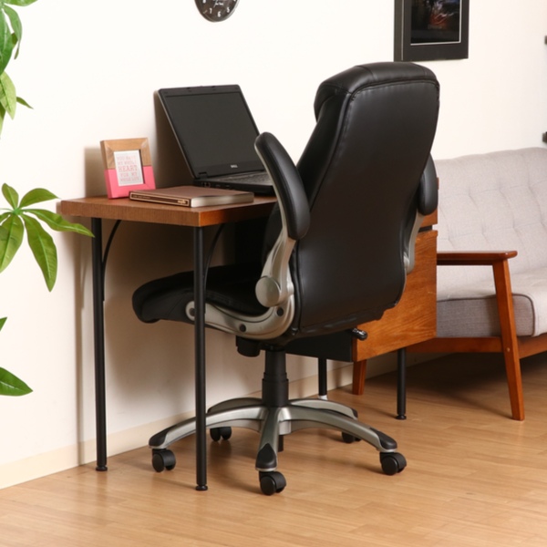 背中を包み込んでくれるハイバックチェアなのでゆったりとした座り心地を実現します。クッション材にはウレタンフォームを使用しているので、優しい座り心地となっています。また、レザー調の生地は汚れにも強く、お手入れも簡単です。