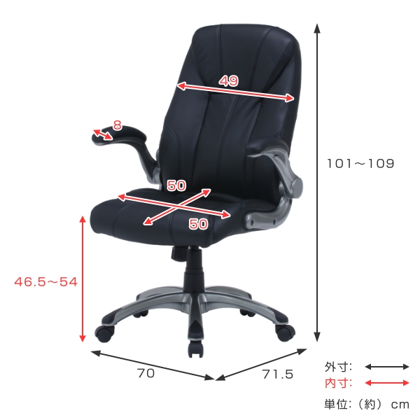 オフィスチェア 座面高46.5〜54cm レザー調 デスクチェア ( チェア パソコンチェア ワークチェア PCチェア 可動式 肘付き イス 椅子 オフィス 学習 勉強 )