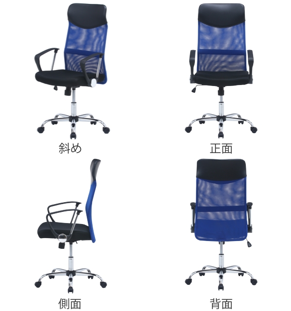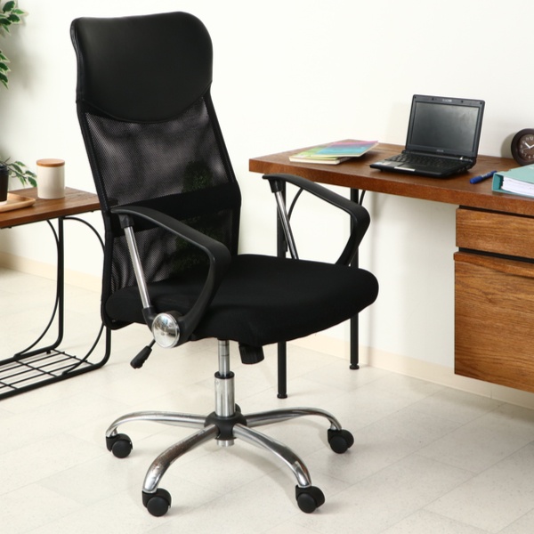 上半身を支えてくれるハイバック仕様のチェアです。シンプルなデザインなので会議室やオフィスはもちろん、在宅ワーク用チェアとしてご自宅でもご使用していただけます。