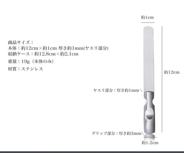 本体:約12cm×約1cm 厚さ約1mm(ヤスリ部分)