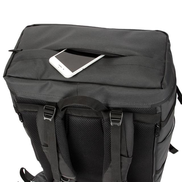 フロント側のファスナーポケットは、左右からアクセスが出来ます。B5サイズが収まるサイズで、瞬時に取り出した物の収納に役立ちます。