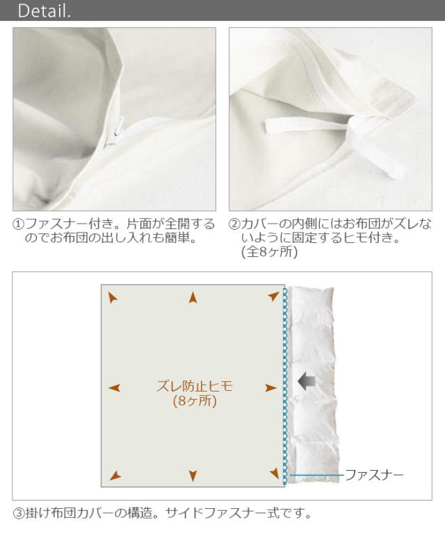 | ・ズレ防止ヒモ付(8ヶ所) ・全開サイドファスナー ・天面に接ぎ目なし |