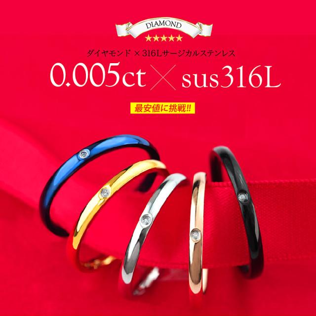 天然ダイヤモンド リング 金属アレルギー対策 サージカルステンレス シンプル スリム sr0157
