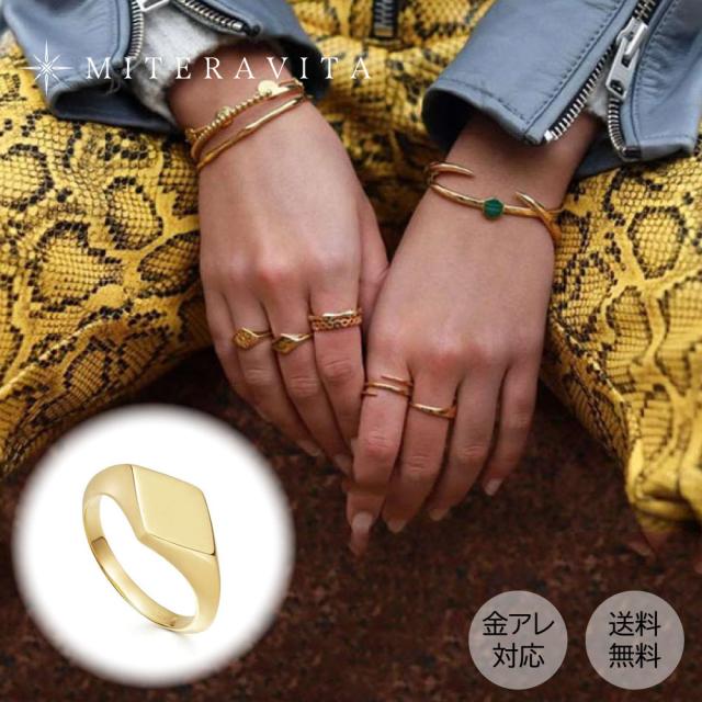 金属アレルギー対応 リング サージカルステンレス リング 指輪 リング ひし形 台座 デザイン SUS316L K18 シンプルデザイン ゴールド MITERAVITA ミテラヴィータ【R5】